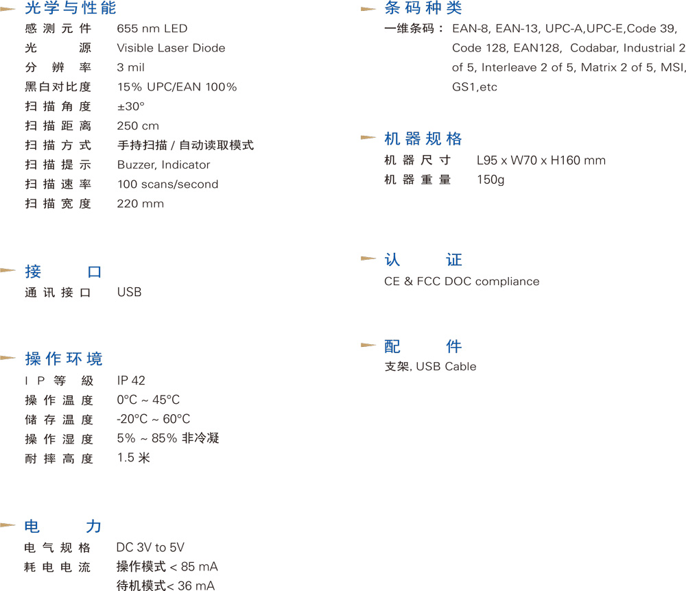 ● 支持分辨率3 mil与黑白对比度(PCS)15%条码读取